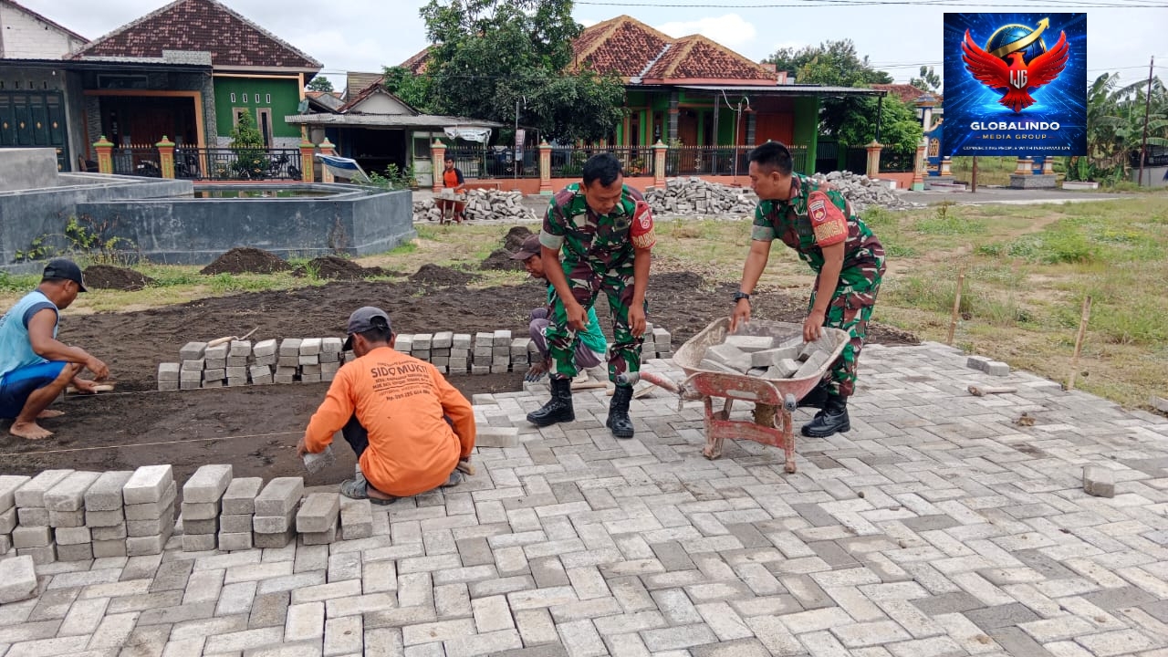 Sragen,multi.i-news.site, Dalam rangka meningkatkan sarana dan prasarana desa, Babinsa Desa Tanggan Koramil 12/Gesi Kodim 0725/Sragen Serda Ali Sumanto turut serta melaksanakan kerja bakti pemasangan paving di lapangan desa bersama warga setempat.