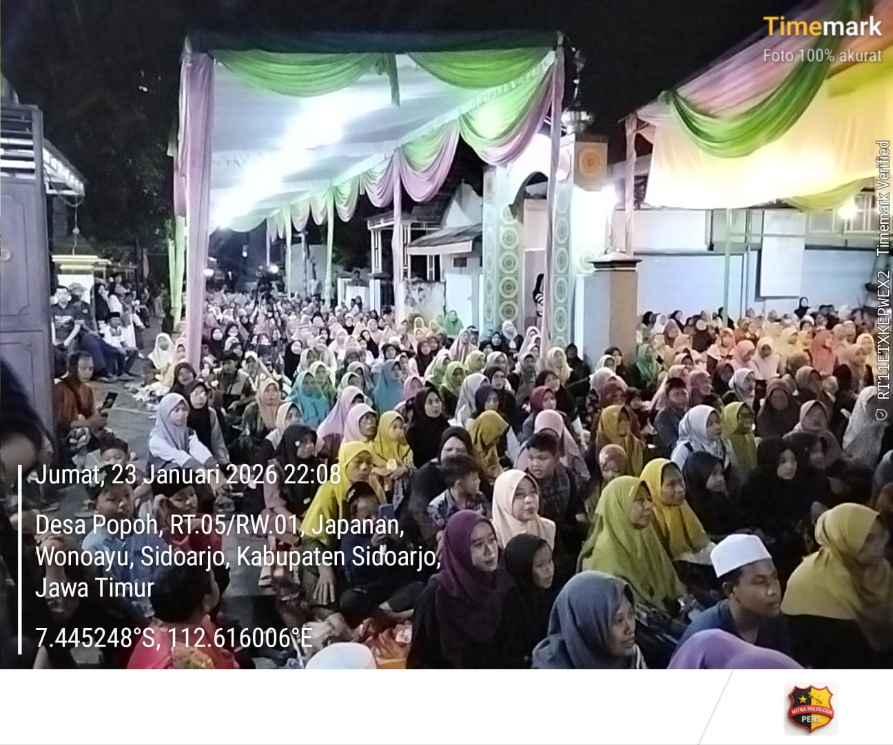 SIDOARJO-multi.i-news.site, Dalam rangka mengenang cikal bakal Mbah Buyut Den Mas sekaligus mengirim doa untuk keselamatan Dusun Japanan, Desa Popoh, warga RT 05 RW 01 menggelar sholawat dan doa bersama pada Jumat, 23 Januari 2026. Kegiatan tersebut berlangsung khidmat dan penuh kebersamaan.